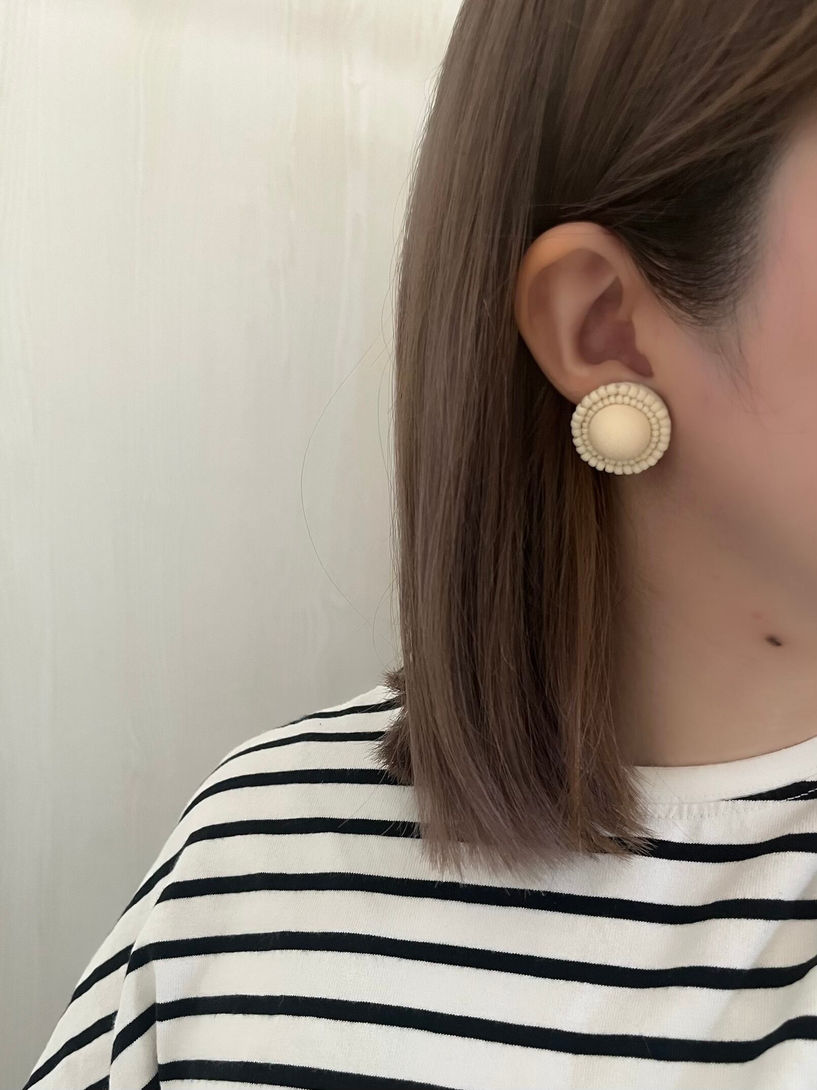 クリームカラーで優しく耳元を彩り、でも印象を与えてくれるイヤーアクセサリーとなっています。