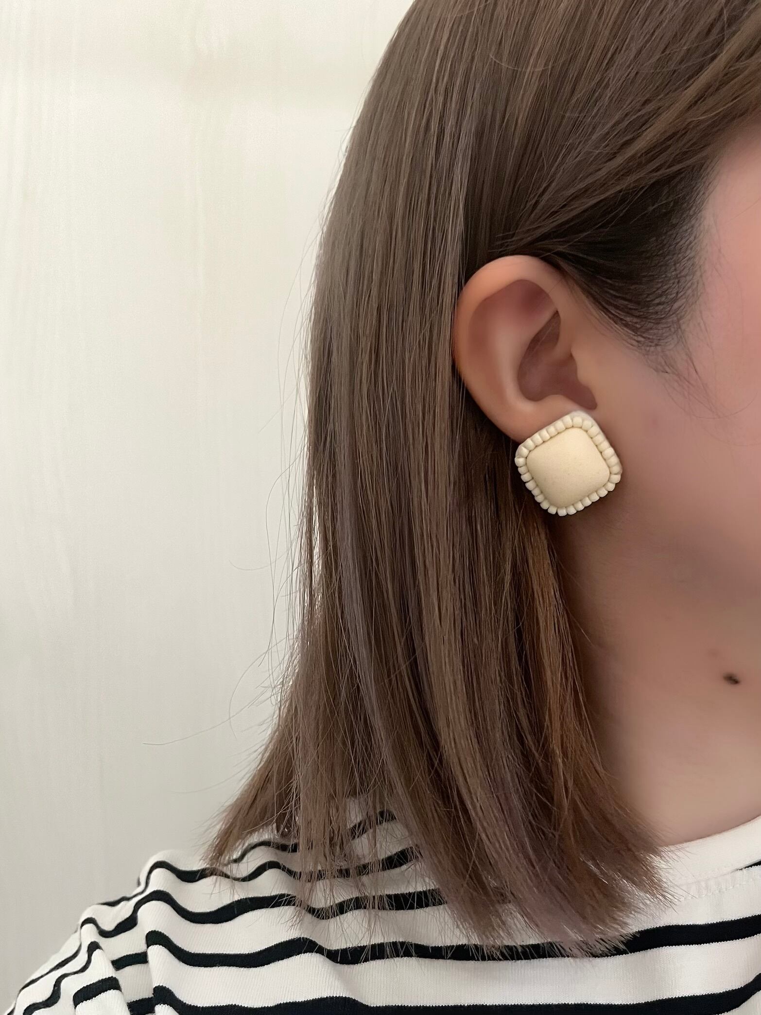 クリームカラーで優しく耳元を彩り、でも印象を与えてくれるイヤーアクセサリーとなっています。